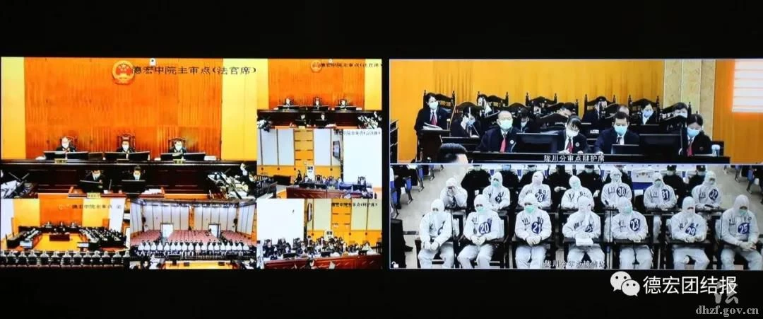 因此案涉案人员众多,且在新冠肺炎疫情防控期间,德宏中院首次采用“1+1庭审模式”(在德宏州中级人民法院设主审法庭,同时在陇川县人民法院设分审法庭),这种新的庭审模式对涉案人数众多,关押地分散的涉黑涉恶案件审理是一种新的尝试和运用,对节约司法成本,提高审判效率有着较大的促进作用。