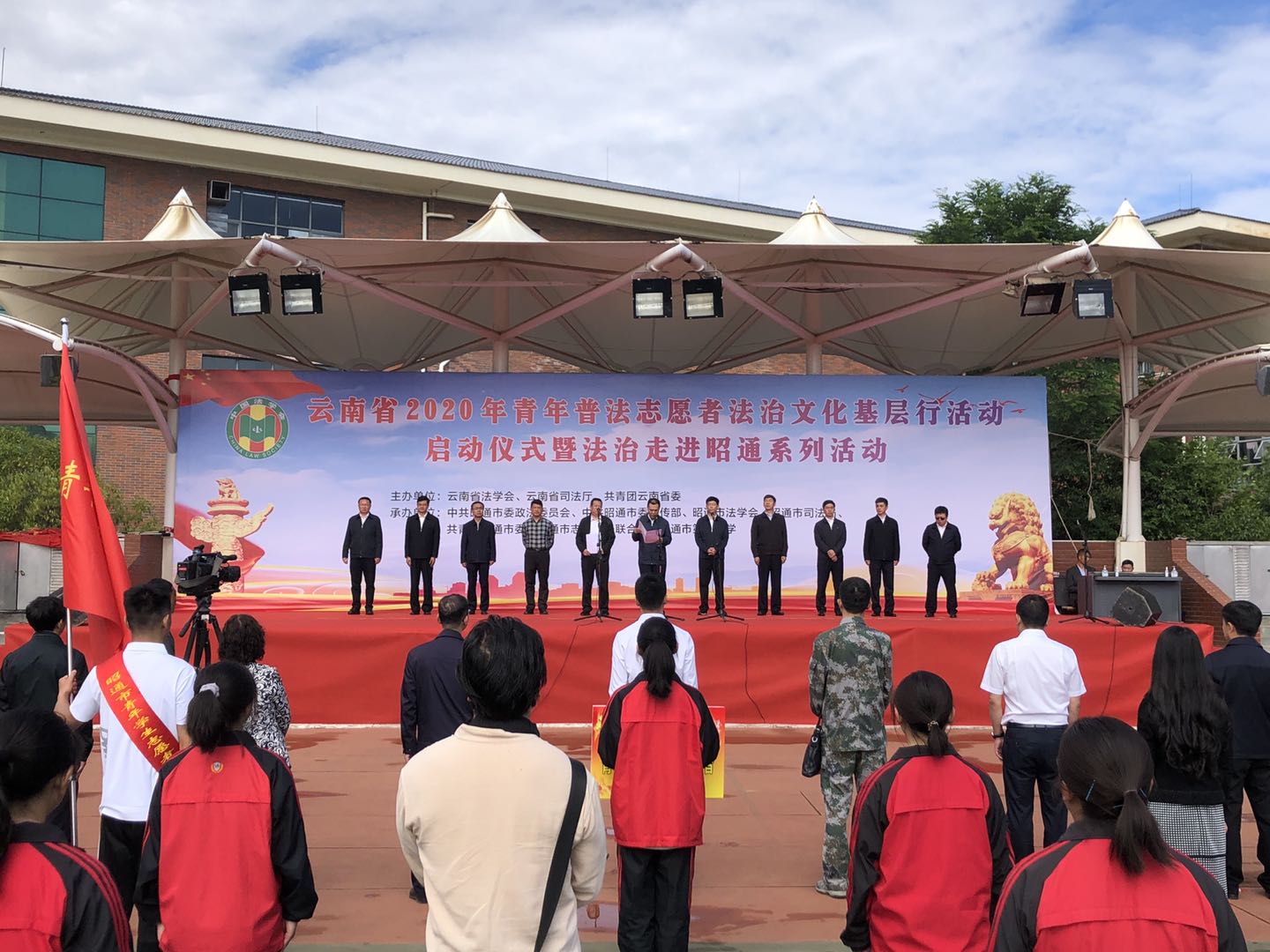 省法学会常务副会长赵祖莹、省司法厅副厅长齐金岭、共青团云南省委副书记陈选良,昭通市委书记杨亚林,市委常委、市委政法委书记、市法学会会长罗朝峰等市级领导出席启动仪式,青年普法志愿者代表、昭通市第一中学师生代表等共约500余人参加启动仪式。