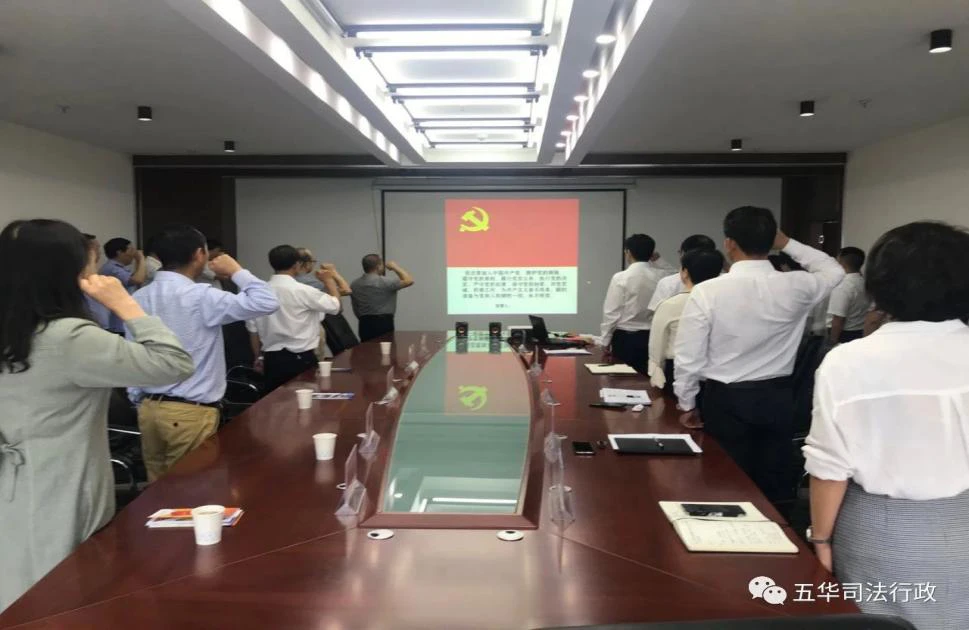 实地观摩结束后,参加活动的党员列队面向党旗,庄严的重温入党誓词,共同观看了反映五华区司法局党建工作和普法依法治理业务工作成效宣传片《五力党建助推司法行政跑出加速度》《让法治成为城市最鲜亮的底色》。同时,省法学会党支部与五华局司法局机关党支部就加强机关党建工作进行了深入的座谈交流。