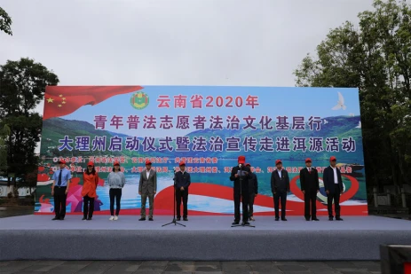 8月20日,云南省2020年青年普法志愿者法治文化基层行大理州启动仪式在洱源县玉湖公园举行。