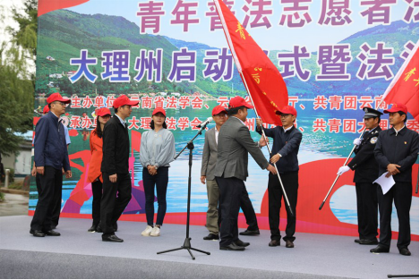 启动仪式上,大理州委政法委副书记王绍荣为12个县市的青年普法志愿者代表授旗并讲话,洱源县委常委、县委政法委书记、县法学会会长赵栋葵致辞,州司法局党委副书记、副局长田强和共青团大理州委副书记邓娜出席活动并讲话,田强同志宣布活动启动。大理州各县(市)委政法委书记、法学会负责人,洱源县政法部门各相关领导及各乡镇、县级各部门干部职工以及青年普法志愿者和广大群众共计500余人参加启动仪式。