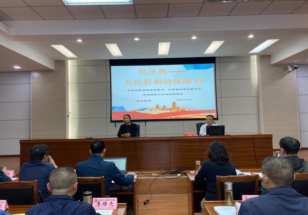 为进一步增强省直机关处级领导干部的法律素养,培养法治思维和法治能力,根据省法学会的安排和应省直机关党校的邀请,10月15日上午,省法学会副会长、云南财经大学法学院院长佴澎教授,为省直机关第29期处级领导干部进修班作题为“民法典——人民权利的保障书”专题讲座。这是2020年云南省“百名法学家百场报告会”进党校的讲座之一。