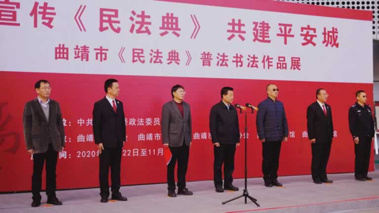 10月22日上午,由中共曲靖市委政法委员会主办,曲靖市法学会、曲靖市司法局、曲靖市书法家协会、曲靖市美术馆、曲靖市博物馆承办的“宣传《民法典》 共建平安城”——曲靖市《民法典》普法书法作品展览活动在曲靖市美术馆举行开幕式。