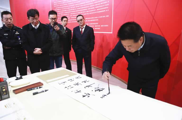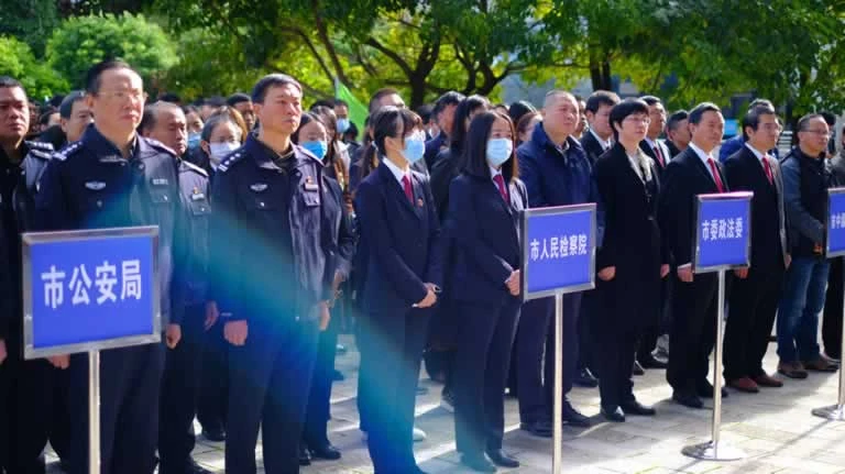 曲靖市委常委、市委政法委书记吴朝武出席开幕式讲话并宣布开幕。市委政法委及市级政法部门和基层政法单位有关领导共260余人参加了开幕式和展览活动。