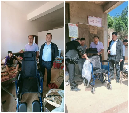 为扎实开展党史学习教育实践活动,切实为群众办实事、做好事,5月9日上午,昆明市富民县法学会常务副会长段玮、专职副会长李再兴率领法学会会员到赤鹫镇十三箐村为患病瘫痪农户李自富送轮椅、解难题。