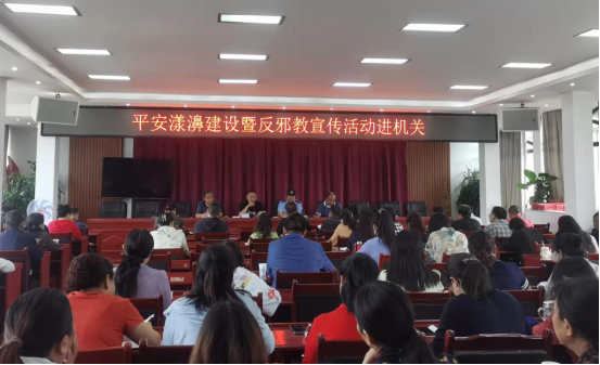 为牢牢把握意识形态工作主动权,坚持源头治理、依法治理,坚持系统谋划、整体推进,将反邪教宣传纳入平安法治建设宣传大格局,营造全社会齐抓共管、合力反邪的氛围,进一步引导和教育漾濞县机关党员领导干部、职工熟练掌握反邪教知识,增强识别、防范和抵制邪教反邪教意识,有效防止邪教的渗透和侵蚀,5月12日上午,漾濞县委政法委、漾濞县法学会联合漾濞县公安局、司法局等漾濞县“反邪教宣传警示教育年”活动领导小组成员单位,到漾濞县农业农村局开展了“平安漾濞建设暨反邪教宣传活动进机关”宣讲活动。