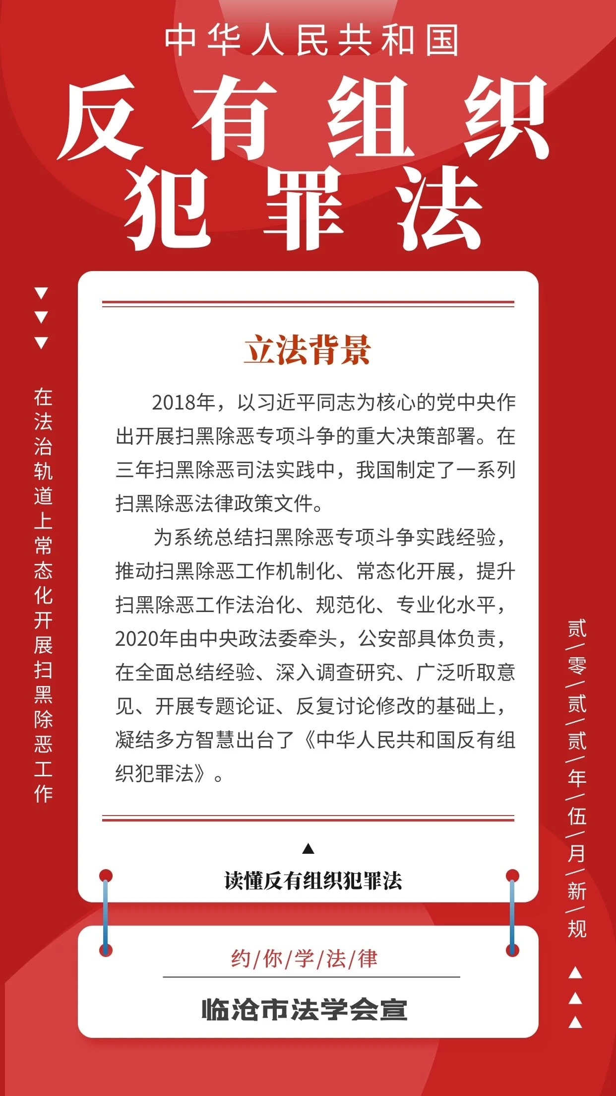 制定颁布实施《反有组织犯罪法》,是常态化开展扫黑除恶斗争的必然要求,是党中央开展扫黑除恶斗争的标志性成果,是构建中国特色反有组织犯罪制度的成功探索和伟大实践,有利于健全完善以法律、立法解释、司法解释等多种形式相互衔接配套的反有组织犯罪法律体系,更好运用法治思维和法治方式打击黑恶势力,确保扫黑除恶斗争始终在法治轨道上向前推进;有利于进一步健全行业领域涉黑涉恶违法犯罪防控体系,汇聚全社会共防共治的强大力量,从源头上预防减少黑恶势力滋生蔓延;有利于进一步强化执法司法机关的法治意识、人权意识、证据意识、程序意识和自觉监督意识,努力让人民群众在每一起扫黑除恶案件中感受到公平正义。