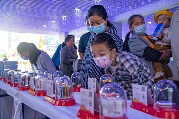 活动现场,宣传志愿者为大家带来禁毒知识小课堂,讲解了毒品种类、禁毒法条、毒品危害等知识。现场群众驻足毒品模型和禁毒知识展板前观看,民警借助仿真毒品模型向他们讲解新型毒品知识和拒毒、防毒技巧,帮助现场观众更加直观地了解禁毒知识。