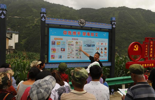 6月26日,在第35个国际禁毒日到来之际,怒江州法学会联合怒江州委政法委驻村工作队在泸水市洛本卓乡保登村开展了以“健康人生 绿色无毒”为主题的禁毒宣传活动。