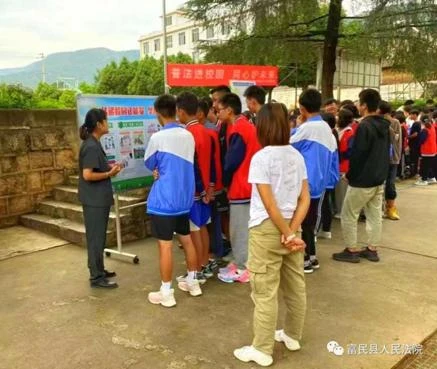 近日,在暑假来临之际,昆明市富民县法学会组织会员单位到款庄中学开展“普法进校园,同心护成长”主题的普法宣传活动。