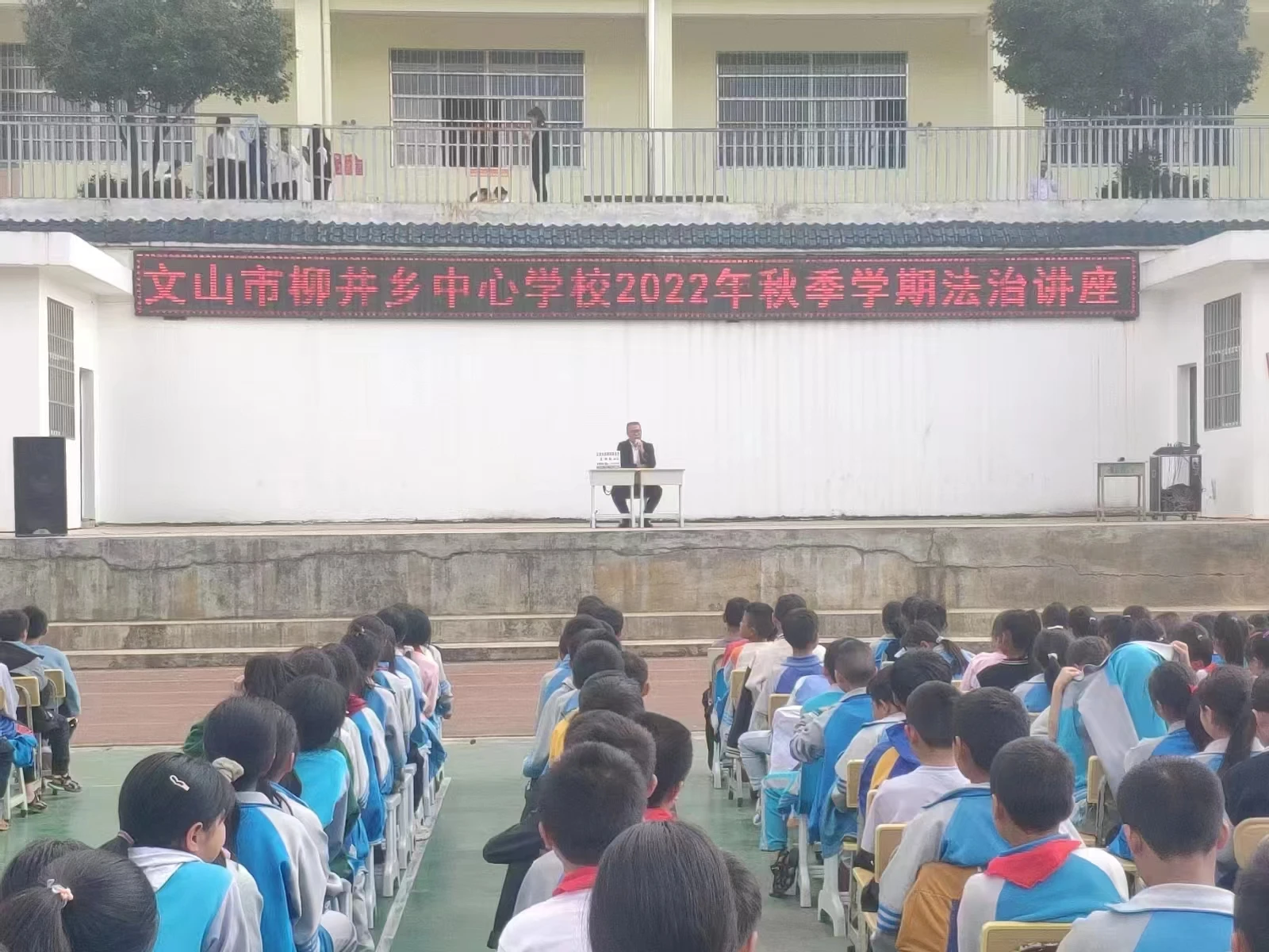 近日,受文山市柳井乡中心学校邀请,文山市法学会会员律师庄国权,到校为700多名中小学生及60余名干部职工举行主题为“遵纪守法,远离违法和伤害”的法治专题教育讲座。