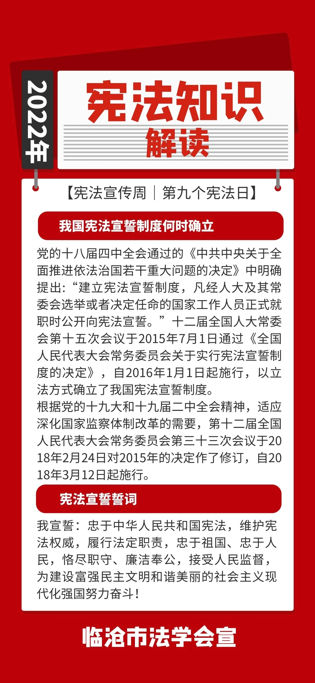 2022年12月4日是第九个国家宪法日,12月4日至10日是今年的宪法宣传周。第五个宪法宣传周的活动主题是“学习宣传贯彻党的二十大精神,推动全面贯彻实施宪法”。