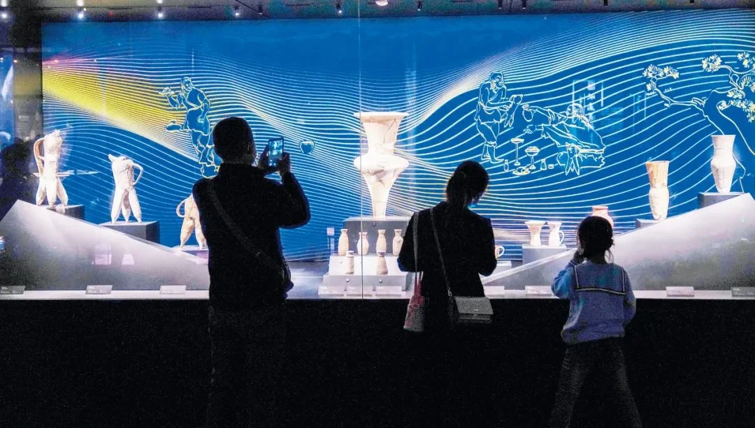 党的二十大关于“弘扬社会主义法治精神,传承中华优秀传统法律文化”的要求,推动中华优秀传统法律文化精华同社会主义法治文化精髓相贯通、同中国特色社会主义法治精神相融通。图为参观者在四川省广汉市三星堆博物馆内欣赏展品。新华社记者 刘潺/摄