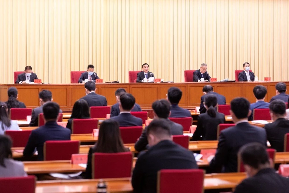 7月10日,中国法学会会长王晨在京出席2023年“港澳与内地青年法律交流周”开幕式并致辞。戎珊 摄
