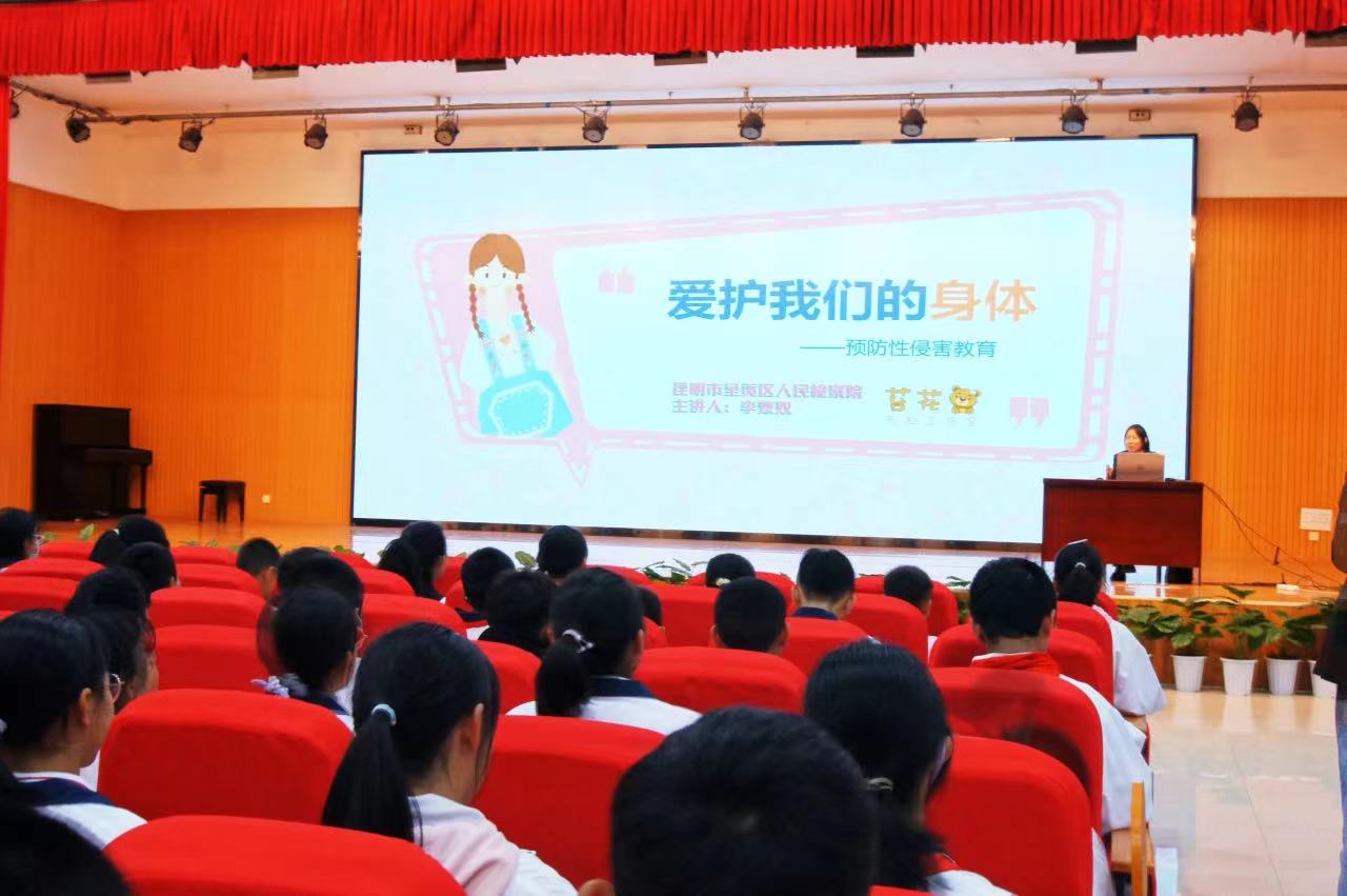 互联网的快速进步往往伴随着新型犯罪的产生,互联网空间对未成年人的不法侵害更加值得警惕。为进一步落实昆明市呈贡区预防性侵害法治宣传“三个全覆盖”专项行动要求,提高未成年人的自我保护意识,养成安全上网的良好习惯。近日,呈贡区法学会联合呈贡区检察院“未检苔花工作室”检察人员李蒙双应邀为昆明市第三中学滇池新城校区初一年级的同学们讲授预防性侵主题法治课。