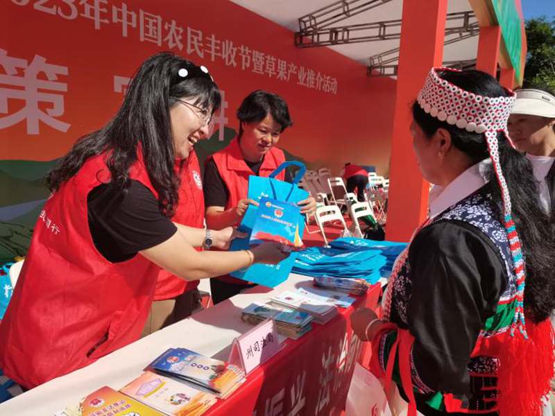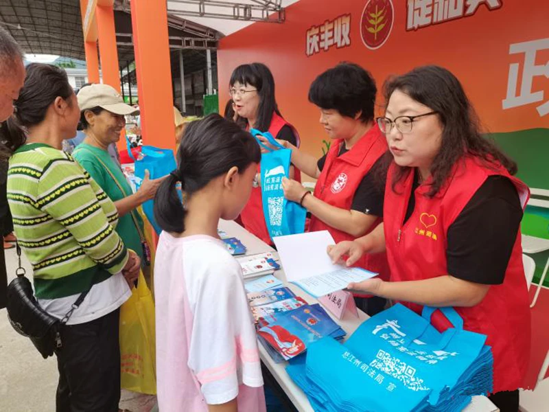近日,“庆丰收 促和美”怒江州2023年中国农民丰收节暨草果产业推介活动在泸水市上江镇蛮英村隆重举行,各族农民群众欢聚一堂,纷纷展示着各自的农产品以及手工艺品等,到处洋溢着丰收喜庆的氛围,展现了怒江最美“丰”景。为更好满足群众多层次、多样化的法律服务需求,全面助力乡村振兴,怒江州司法局、州法学会组织“云小普”普法志愿者前往活动现场开展法治宣传活动,为喜庆丰收的农民送上一道丰盛的“法治大餐”。