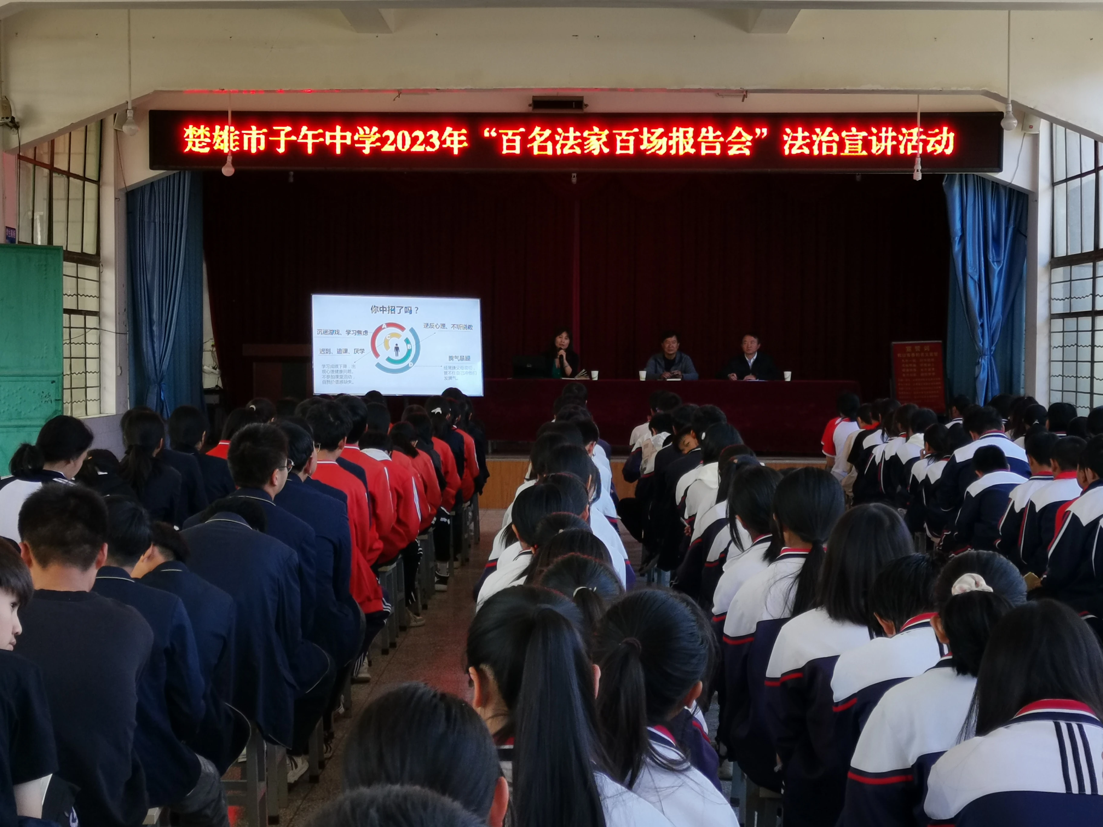 为进一步加强未成年人法治教育,全面提高青少年法治素养,有效预防青少年违法犯罪,近日,楚雄市法学会联合专项普法工作队第五工作组、子午司法所、派出所到学校开展“百名法学家·百场报告会”法治宣讲活动。
