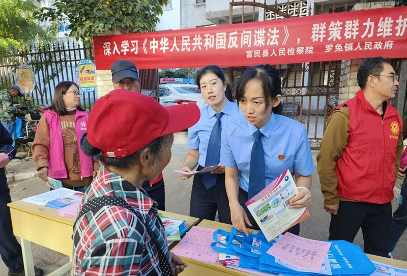 新修订的《中华人民共和国反间谍法》于2023年7月1日起施行。为深入贯彻总体国家安全观,增强全民反间谍安全防范意识和国家安全素养,近日,昆明市富民县法学会组织成员单位县检察院等相关单位开展主题为“我们都是国家安全的守护人”普法宣传志愿服务活动。