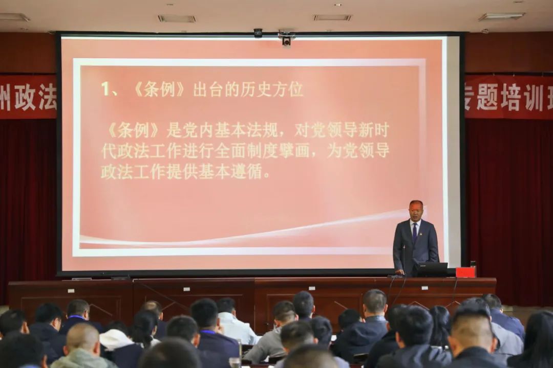 赵连堂作题为《深入学习、严格执行“中国共产党政法工作条例”,确保党对政法工作的绝对领导》的专业解读,深入浅出地讲解了《条例》出台的背景、意义以及《条例》的适用范围和主要内容,对全体参训人员全面理解和把握《条例》的精神实质和具体内容,具有很强的针对性、指导性。