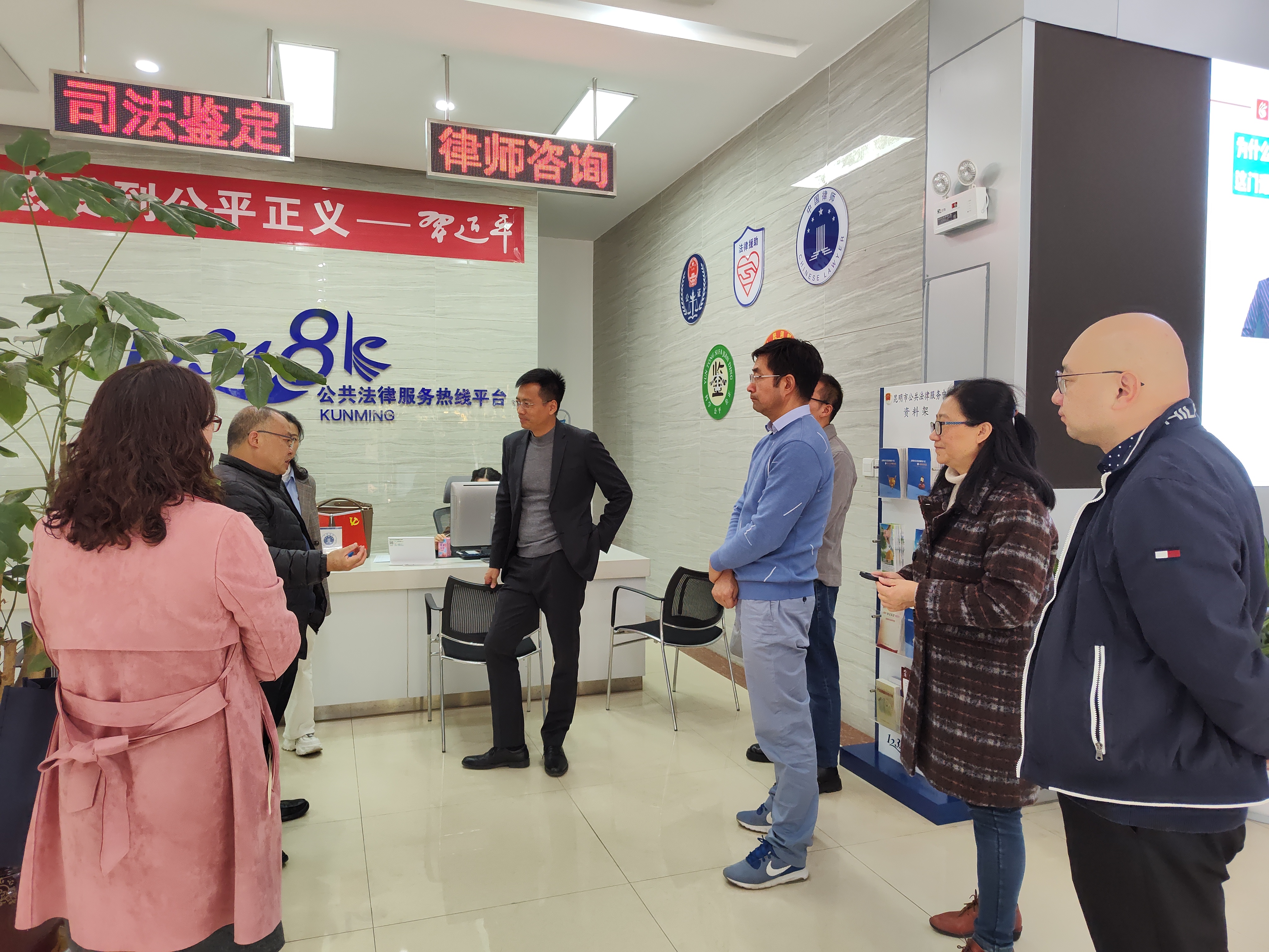 在昆明市公共法律服务中心,省级推进昆明中央法务区建设协调领导小组办公室领导详细了解了公共法律服务中心的窗口设置、业务办理、人员入驻等情况,并结合现场调研情况,对昆明中央法务区公共法律服务中心的建设标准、办理业务、场地规模作了进一步细化和要求。省司法厅就人员入驻、经费开支、对外展示等关键问题与省级推进昆明中央法务区建设协调领导小组办公室进行了深入交流和探讨。