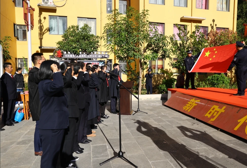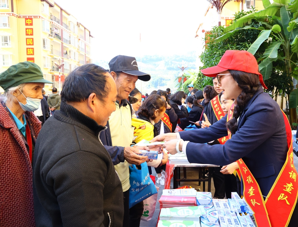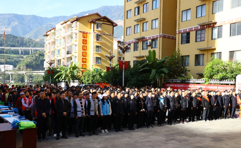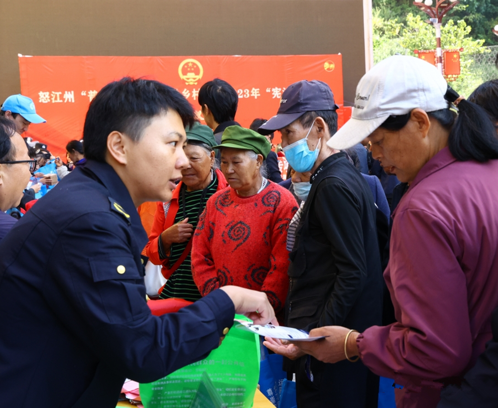 12月4日上午,在泸水市六库街道团结社区广场,怒江州法学会联合多部门开展的怒江州2023年“普法强基·宪法进乡村”活动暨“宪法宣传周”启动仪式在热烈的气氛中拉开帷幕。怒江州委常委、州委宣传部部长和桂莲,省专项普法工作队第十四工作组组长、省人民检察院二级高级检察官邱进伟,州委政法委副书记胡小涛,泸水市委常委、市委政法委书记李扬海,怒江州委办、州政府办、州人大办、州政协办相关领导以及怒江州、泸水市相关部门干部代表、律师代表、法律服务工作者代表、基层群众代表等共计1000余人参加。