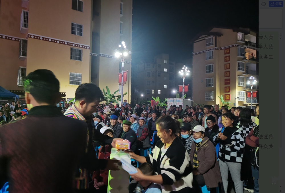 怒江州民族文化工作团演员们为社区群众带来了精彩的文艺演出,州强制隔离戒毒所、怒江边境管理支队等参与表演。此次演出,将弘扬宪法精神、凝聚社会正能量、实施精准普法助力美好生活的生动故事搬上了舞台,为观众带来了一场生动有趣的法治文化视听盛宴,让观众在欣赏文艺表演的同时,进一步增强了法治意识和法治观念。演出过程中还穿插了法律知识竞答,让法律知识深植群众心中。