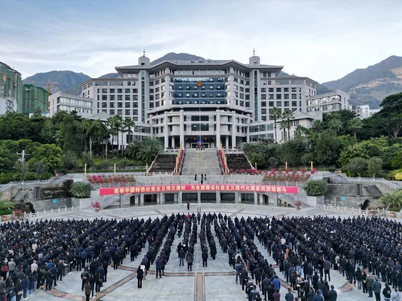 上午8时30分,全体人员列成整齐方阵,精神饱满,齐声高唱《歌唱祖国》。英姿飒爽的国旗护卫队手握钢枪,迈着铿锵有力的步伐,护卫五星红旗走向升旗台。随后,在激昂的国歌声中,鲜艳的五星红旗冉冉升起,全体人员庄严肃立,行注目礼。