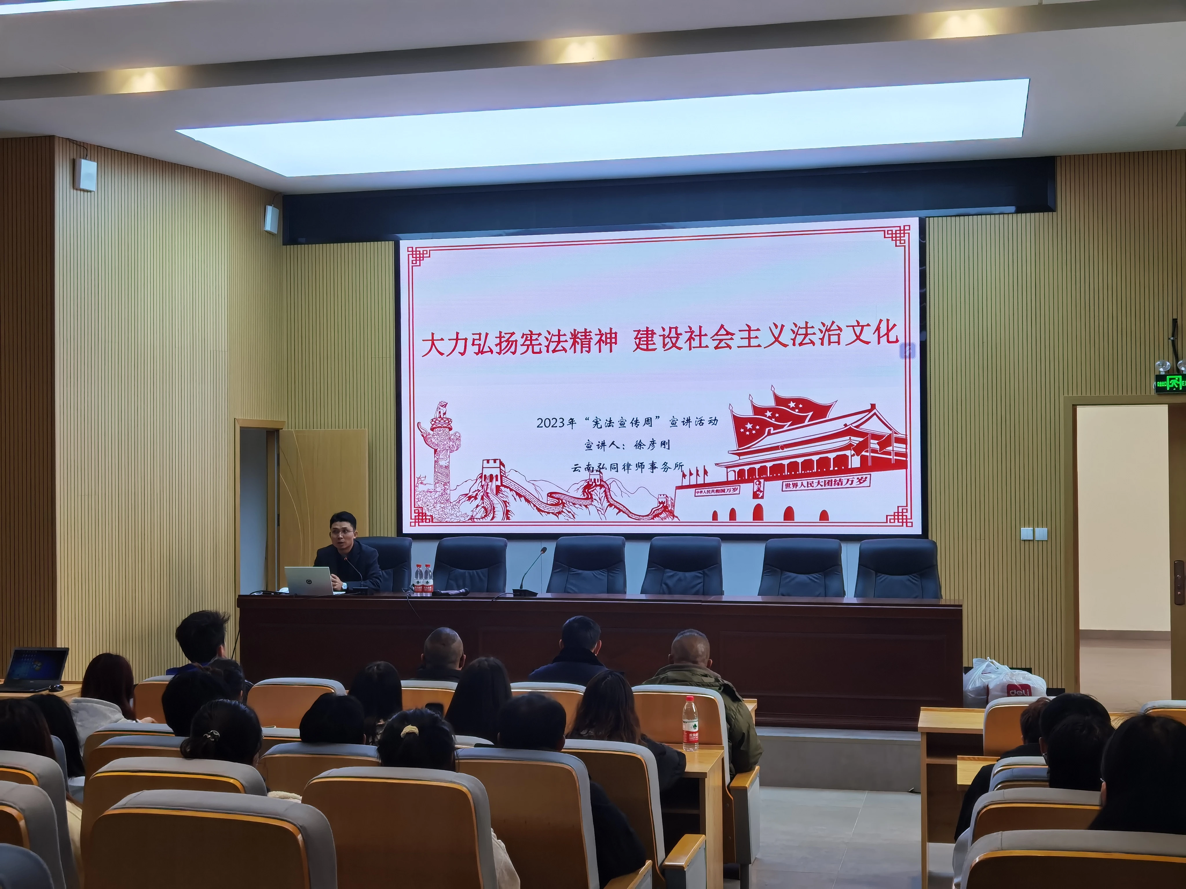 为认真贯彻落实党的二十大精神,着力补齐基层法治宣传工作短板弱项,全面提升基层普法工作质效,近日,昆明市五华区委政法委、五华区法学会和龙翔街道办事处,在云南省农业职业技术学院联合举办第十个“国家宪法日”普法宣传活动。