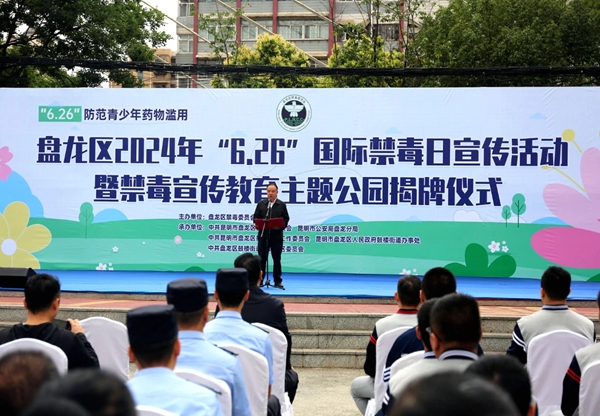 2024年6月26日是第37个“6·26”国际禁毒日。为提高社会公众对毒品危害的认识,增强青少年拒毒防毒意识,营造全民禁毒的氛围,6月26日,昆明市盘龙区法学会联合区禁毒办、市公安局盘龙分局等单位在桃源广场开展以“防范青少年药物滥用”为主题的“6·26”国际禁毒日宣传活动暨禁毒宣传教育主题公园揭牌仪式。