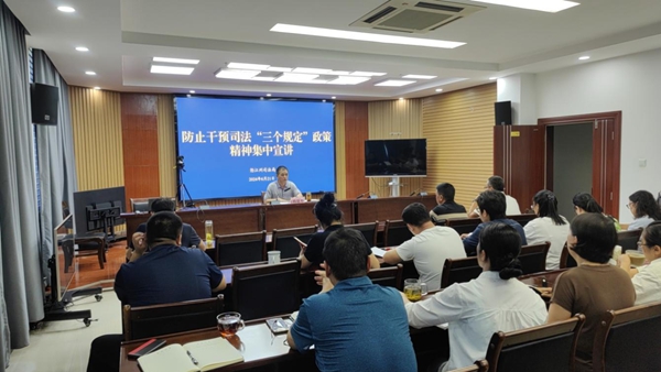 宣讲从“三个规定”出台背景和意义、“三个规定”适用范围、违反“三个规定”的行为以及记录和责任追究等规定三个方面进行讲解,通报近年来违反防止干预司法“三个规定”典型案例,并对严格贯彻落实“三个规定”提出要求。
