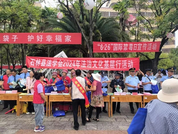 为提高群众防毒、拒毒意识,6月26日,昆明市石林县法学会联合县公安局在鹿阜街道双龙广场组织开展“6·26”国际禁毒日主题宣传教育活动。
