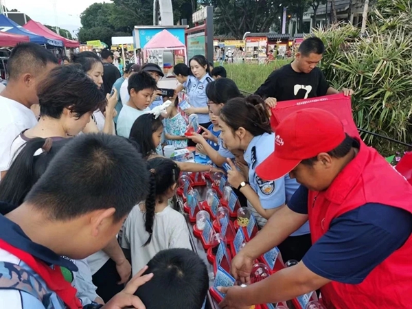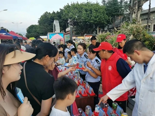 活动现场,普法队员通过设立咨询台、摆放禁毒宣传展板、展示仿真毒品模型等方式,吸引了众多市民驻足观看。“阿姨,这是什么?”“这是仿真毒品。”“我们不能轻易接受陌生人给的食物,不能购买‘三无’产品。”……一个个好奇的小朋友争先恐后向普法队员询问禁毒知识,普法队员向他们详细地讲解毒品的种类、危害以及如何识别和防范毒品等知识,提醒大家要自觉抵制毒品诱惑,远离毒品危害。同时,普法队员还深入夜市摊位,向摊主和消费者发放禁毒宣传资料,呼吁大家共同参与禁毒斗争,营造良好的社会环境。