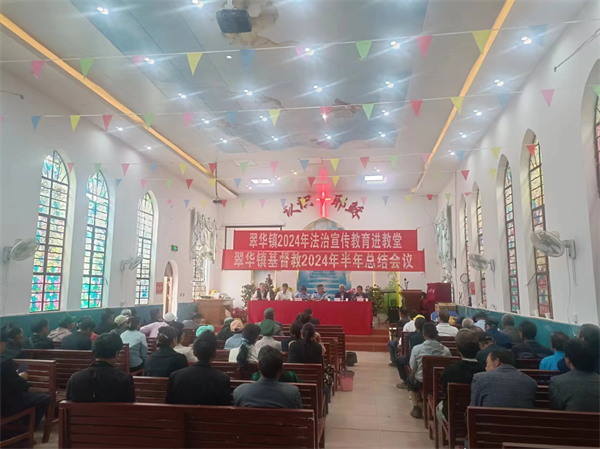 为进一步推进“八五”普法工作,切实提高宗教管理人员和信教群众的法治意识,引导信教群众尊法学法守法用法,依法依规开展宗教活动,7月1日,昆明市禄劝县法学会联合翠华镇司法所、派出所、民族宗教办到翠华镇小仓教堂开展“法律进教堂”法治宣传教育活动。全镇各宗教活动场所负责人、教职人员、信教群众共计60余人参加活动。