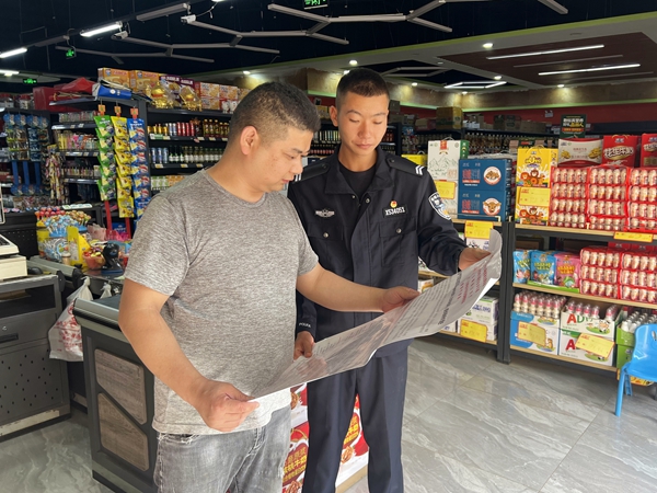 蒙自市老寨派出所法治宣传员到辖区宾馆酒店、沿街商铺、烧烤店等行业场所宣传讲解《关于依法严厉惩治违法违规接纳未成年人及向未成年人提供服务的通告》内容,督促经营者守法经营、规范经营行为,切实维护未成年人合法权益。同时,在场所显眼位置粘贴《通告》,鼓励广大居民群众积极检举、揭发侵害未成年人合法权益的行为,为未成年人安全健康成长营造良好的社会环境。