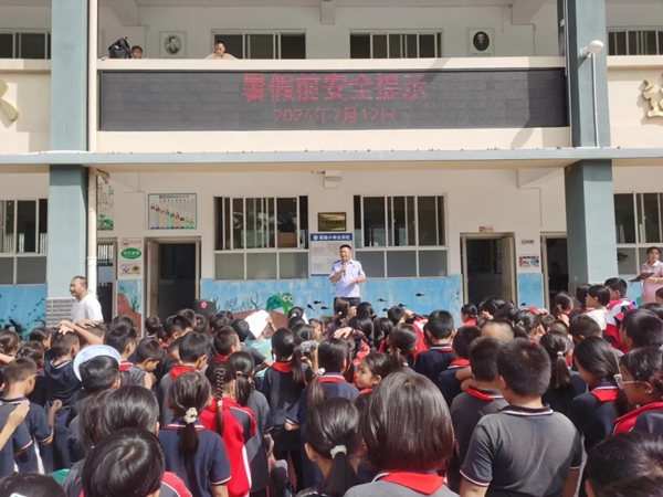 课上,民警结合学生年龄和心理特点,围绕防溺水、交通安全、消防安全、网络安全、食品安全等方面,结合典型案例,运用通俗语言多维度为辖区师生、家长上了一堂生动有趣的法治课,引导学生自觉抵制不良风气、不良诱惑,增强自我保护能力。课后,还向学生家长发放《致学生家长暑期安全的一封信》等宣传材料。