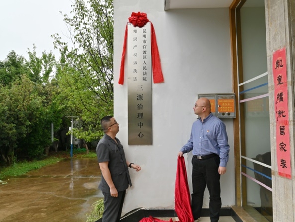 为坚持和发展新时代“枫桥经验”,积极参与诉源治理工作,持续提升基层社会治理能力,为营商环境高质量发展提供优质高效司法服务,近日,昆明市官渡区人民法院挂牌成立“昆明市官渡区人民法院知识产权诉、执、访三源治理中心”(以下简称“三源治理中心”)。昆明市知识产权保护中心、区委政法委、区市场监督管理局、区法学会等单位相关负责同志参加揭牌仪式。