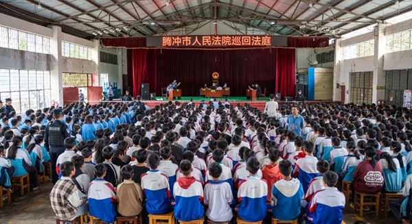 为切实预防和打击“偷引带”等跨境违法犯罪行为,增强边境地区青少年的法治意识,预防青少年参与偷越国境等跨境违法犯罪活动,进一步筑牢边境安全防线,近日,保山市腾冲市人民法院将法庭搬到边境一线,联合腾冲市法学会在猴桥镇民族中学公开开庭审理了一起运送他人偷越国境案。该校全体师生及猴桥镇部分社区联防队员共八百余人参加庭审旁听。