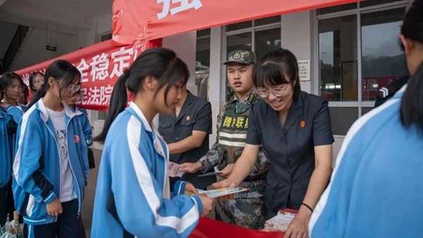 庭审结束后,法官化身普法宣传员,向旁听人员发放了跨境违法犯罪、电信网络诈骗犯罪、反邪教知识科普等相关法律知识宣传手册。同时,以学生的心理年龄特点、认知水平和思维辨别能力为切入口,用通俗易懂的语言引导大家认清参与“偷引带”活动的危害性,自觉抵制跨境违法犯罪行为,教育同学们从小事做起、从日常做起,认真学法、知法懂法、自律守法,呼吁大家当好“小小法治宣传员”,共同做边境线上的守护者。当天,共发放普法宣传资料500余份。