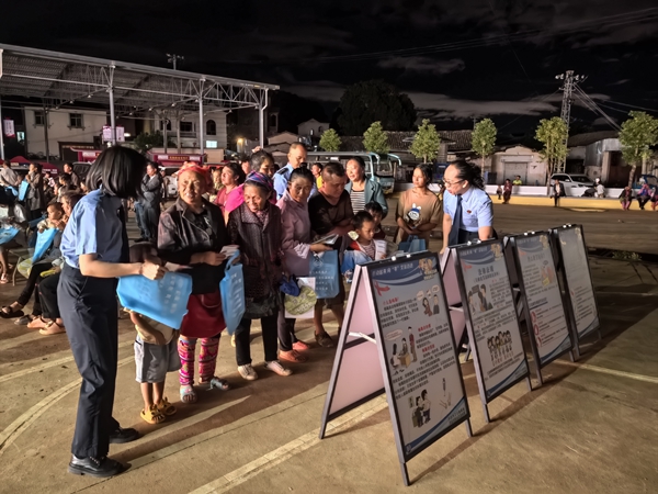 为进一步提升普法针对性、实效性,近期,红河州开远市法学会多家成员单位组成“百万警进千万家”普法宣传队,深入灵泉街道份玉、撒洪口、邓耳、绿塘子及马头坡5个村民小组开展夜间普法宣传活动,将法律知识送到群众家门口。