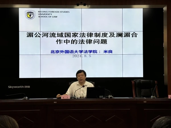 报告会特邀北京外国语大学法学院院长米良作“湄公河流域国家法律制度及澜湄合作中的法律问题”专题讲座。讲座围绕新时代下发展中国与澜湄国家关系的意义、涉外法治背景下中国与澜湄国家的法律合作、从国际法角度看中国与澜湄地区国际组织及该地区各国的关系、中国与澜湄各国共同参与的区域合作机制、涉外法治背景下的澜湄合作机制、澜湄各国的法制现状、老挝法律制度概览七个方面展开论述。