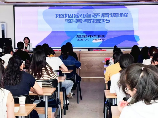 为有效预防和及时化解由婚姻家庭矛盾纠纷引发的风险隐患,进一步提升基层干部及婚姻家庭矛盾纠纷调解专家团队成员的调解能力,近期,楚雄市法学会团体会员单位市妇联举办妇女儿童社会化维权项目中的婚调实务技能培训会。