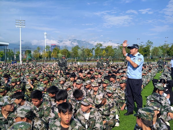 为切实做好新学期护校安园工作,进一步增强师生安全意识和法治意识,提高师生自我防范能力,确保校园及周边社会治安、道路交通秩序,近日,红河州蒙自市法学会会员单位走进红河职业技术学院,组织9300余名军训新生开展“入学第一课 筑牢安全防线”主题宣讲活动。