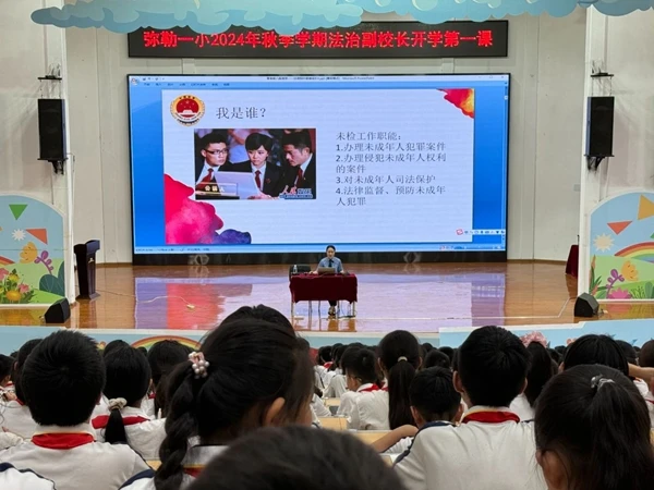 为进一步提升未成年人法治意识,加强未成年人法治宣传教育,营造平安和谐的校园环境,近日,红河州弥勒市法学会联合市人民检察院未检办案组走进弥勒市第一小学,为该校六年级560余名师生带来一堂别开生面的“开学第一课”。