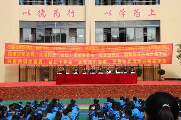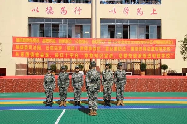 为增强辖区广大师生的国防意识,近日,昭通市镇雄县法学会成员单位县司法局联合多家单位走进明德学校,开展“国防教育进校园”活动,为2300余名师生送上“法治大餐”。