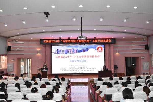 为学习贯彻习近平新时代中国特色社会主义思想,用习近平法治思想全方位占领法学教育和法学理论研究阵地,引导广大师生用习近平法治思想武装头脑、指导教学,近日,云南省2024年“百名法学家百场报告会”玉溪专场宣讲会在玉溪师范学院举行。