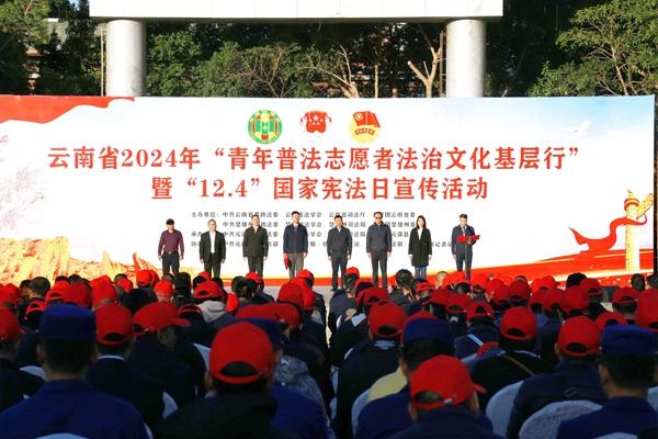 12月4日,楚雄州法学会联合云南省委政法委、云南省司法厅等单位在楚雄州元谋县元谋人广场开展云南省2024年“青年普法志愿者法治文化基层行”暨“12·4”国家宪法日宣传活动。