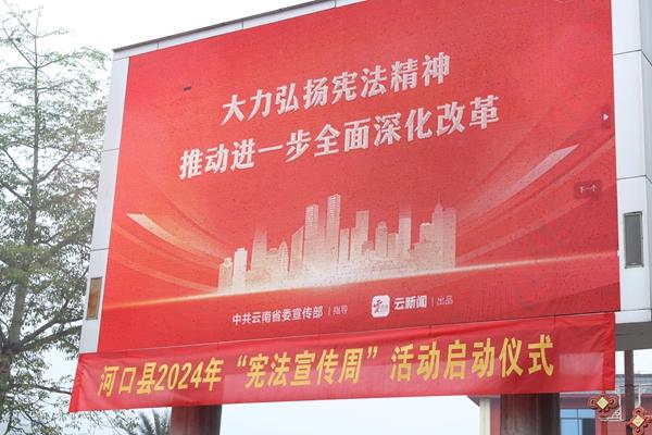 活动现场通过观看云南省2024年国家宪法日宪法宣传公益片、悬挂横幅、摆放展板等方式向群众宣传了与生产生活密切相关的法律法规知识,引导群众运用法律维护自身合法权益,着力提高法治宣传的到达率和覆盖面。