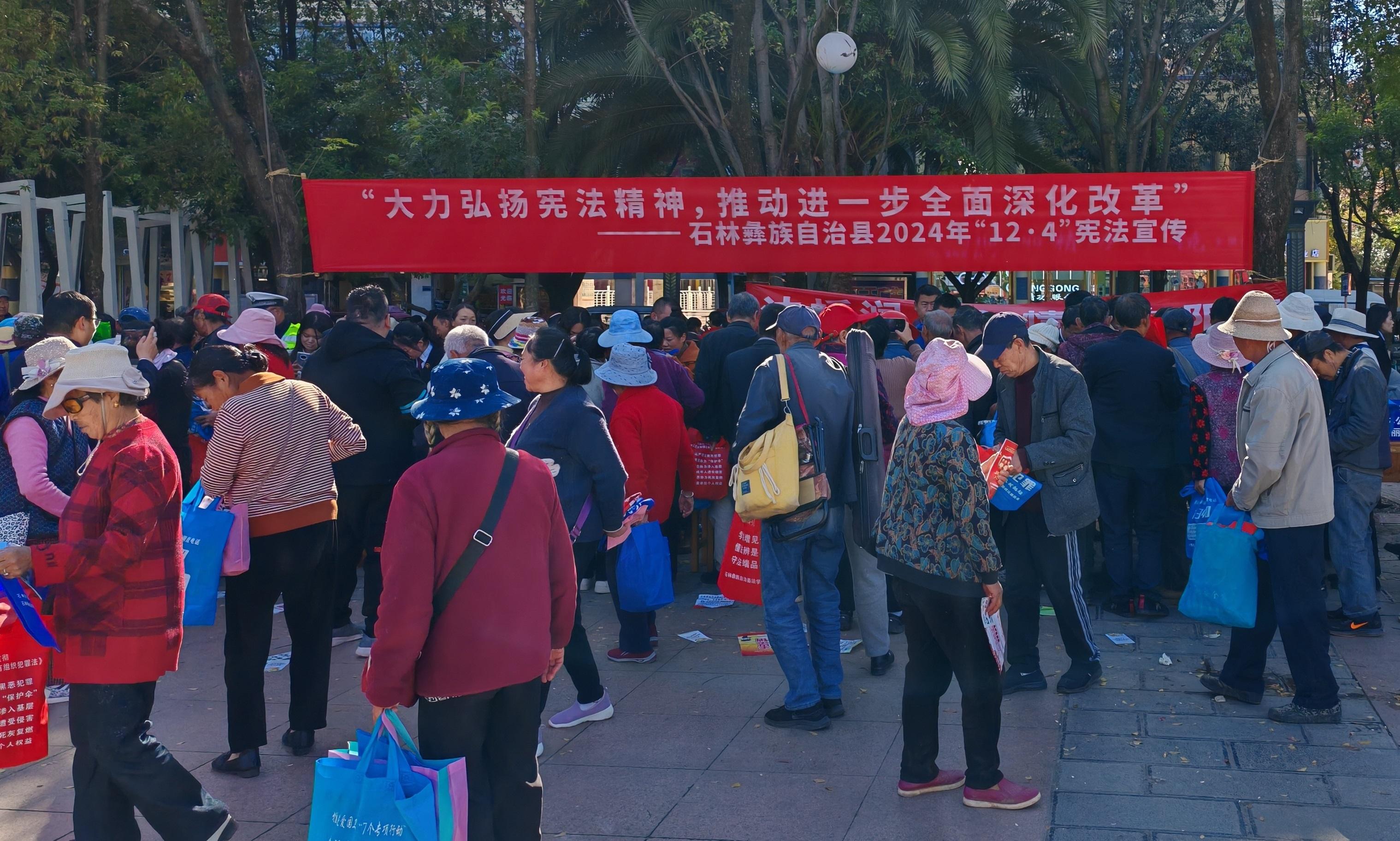 为加强宪法宣传教育,弘扬宪法精神,12月4日,昆明市石林县法学会在鹿阜街道双龙广场开展以“大力弘扬宪法精神,推动进一步全面深化改革”为主题的宪法宣传活动。