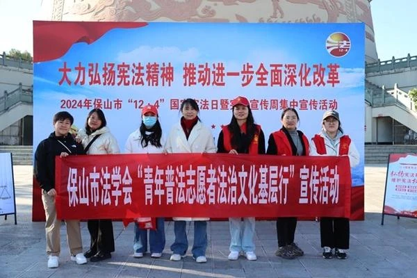 开展“国家宪法日”集中宣传活动。在三馆广场开展保山市2024年“国家宪法日”集中宣传活动。活动现场,青年普法志愿者通过摆放宣传展板、发放宣传资料、提供现场咨询等方式,为参加活动的群众宣讲宪法精神、普及宪法知识、解答法律问题,推动宪法精神融入群众日常生活,走进群众心中。