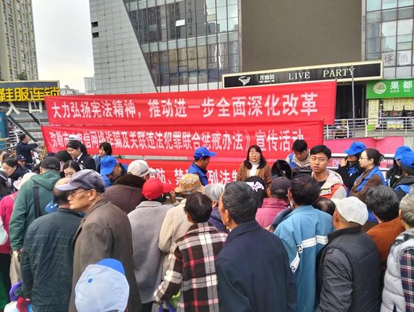 近日,以“大力弘扬宪法精神,推动进一步全面深化改革”为主题的2024年红河州弥勒市“12·4”国家宪法日暨“宪法进社区”集中宣传活动在红河州弥勒市佛城广场举行。弥勒市法学会成员单位、行政执法单位等单位共69人参加活动。